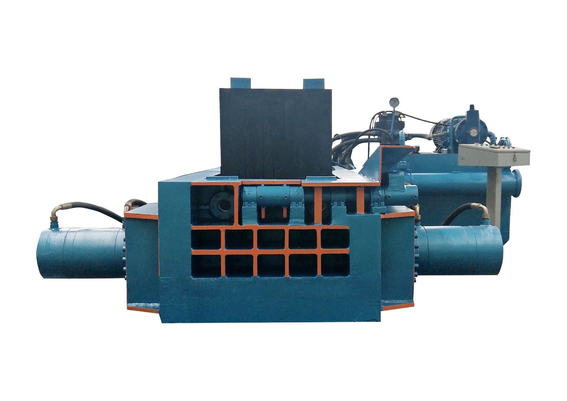 Y81系列金屬液壓打包機可將各種金屬廢邊料(鋼刨花、廢鋼、廢鋁、廢銅、廢不銹鋼以及報廢汽車廢料等)擠壓成長方體、八角形體,圓柱體等各種形狀的合格爐料。既可降低運輸和冶煉成本,又可提高投爐速度。該系列打包機主要適用于鋼廠、回收加工行業(yè)及有色、黑色金屬冶煉行業(yè)。